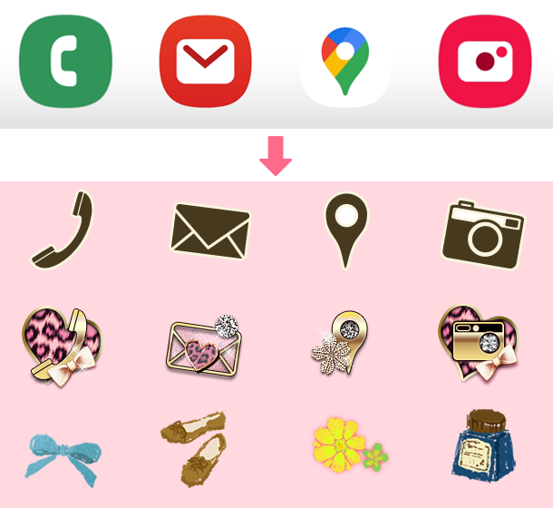 +HOMEをダウンロードすれば簡単にアイコンをきせかえる事ができます!