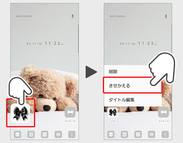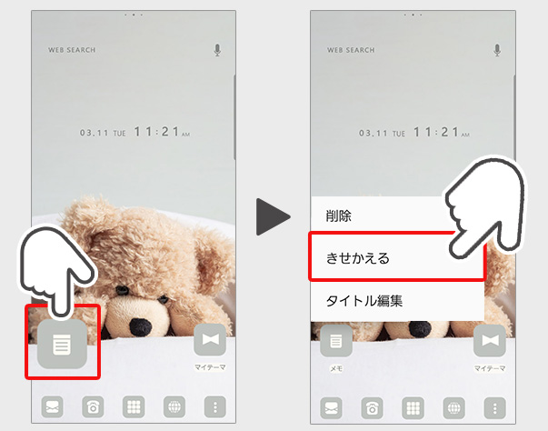 (2)ホーム画面できせかえたいアイコンを長押しする