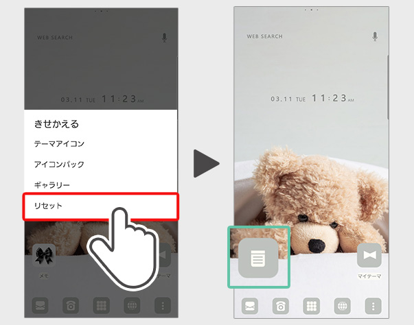 (3)表示されたメニューから「リセット」を選択
